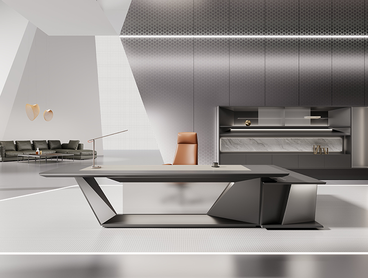 博奧是一款極具建筑感的硬朗風(fēng)格班臺。通過對大量現(xiàn)代幾何建筑硬朗線條的提煉概括以及融入一些未來主義概念設(shè)計的元素,表達(dá)了科爾卡諾對未來主義班臺的設(shè)想,像世人詮釋著幾何、極簡、未來至上的理念。